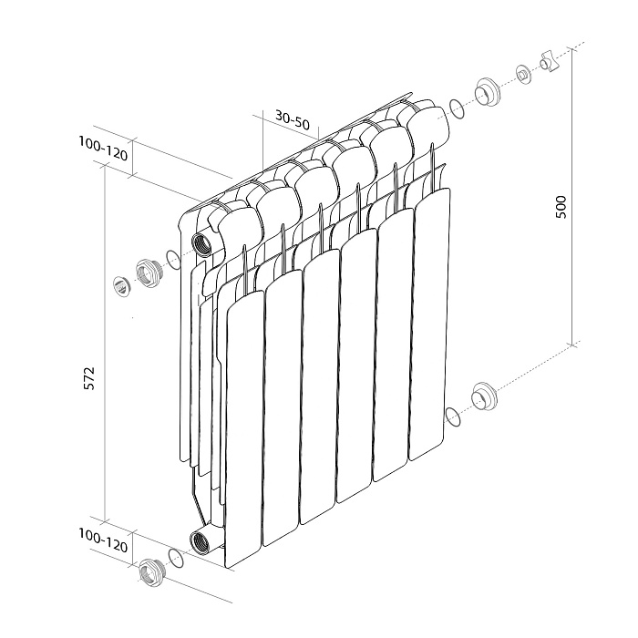 Сверхмощный биметаллический радиатор для любых систем отопления с боковым подключением.